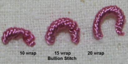 Bullion Stitch: This stitch is best worked with a milliners needle.